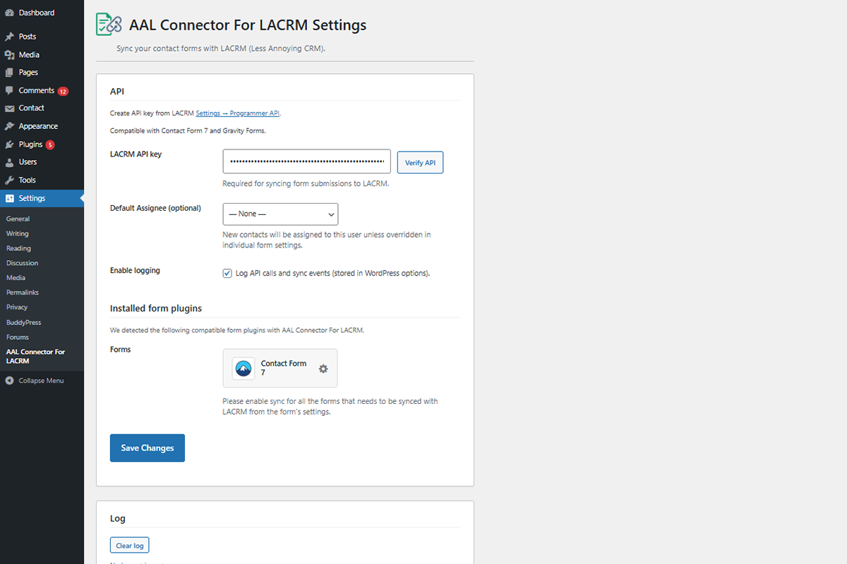 AAL Connector For LACRM connects your WordPress forms to Less Annoying CRM (LACRM). When someone submits a Contact Form 7 or Gravity Forms form, the plugin creates or updates a contact in LACRM—no duplicate contacts when the same email is used.