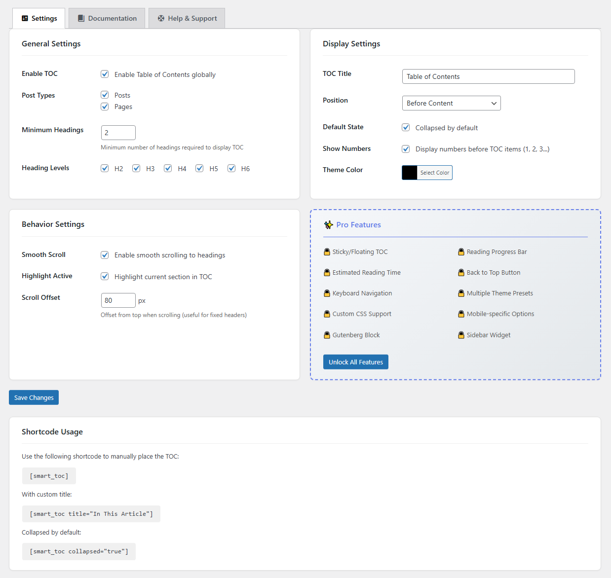 - Per-Post Control – Enable/disable TOC for individual posts or pages