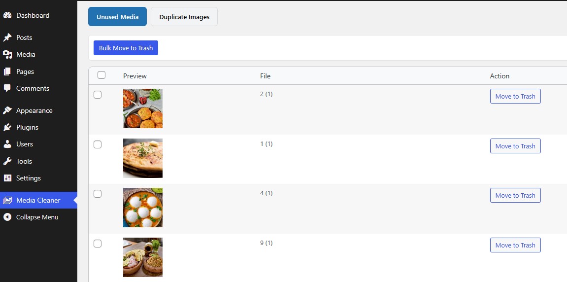 - Open Media Cleaner from the admin menu