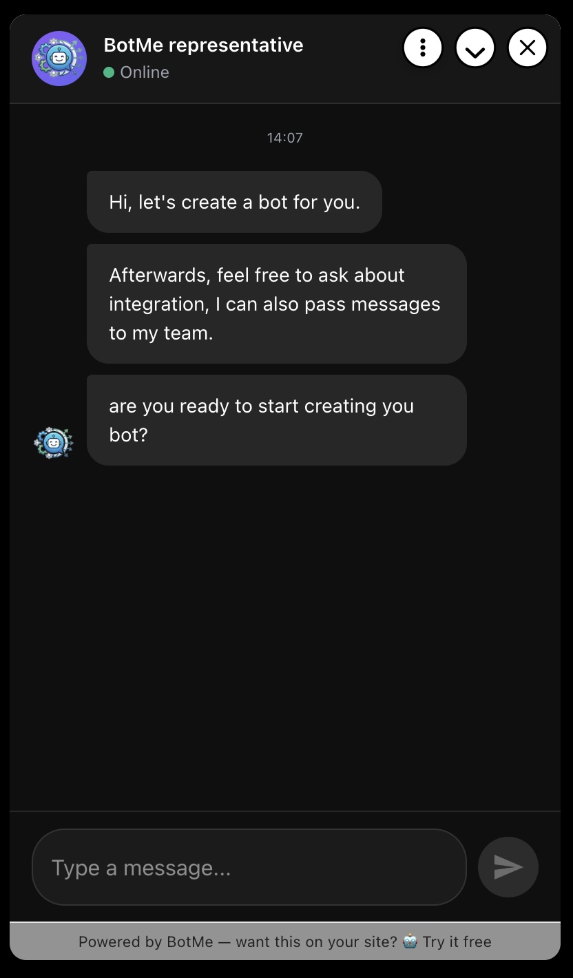 * The SDK handles all chat interactions according to BotMe AI’s privacy practices