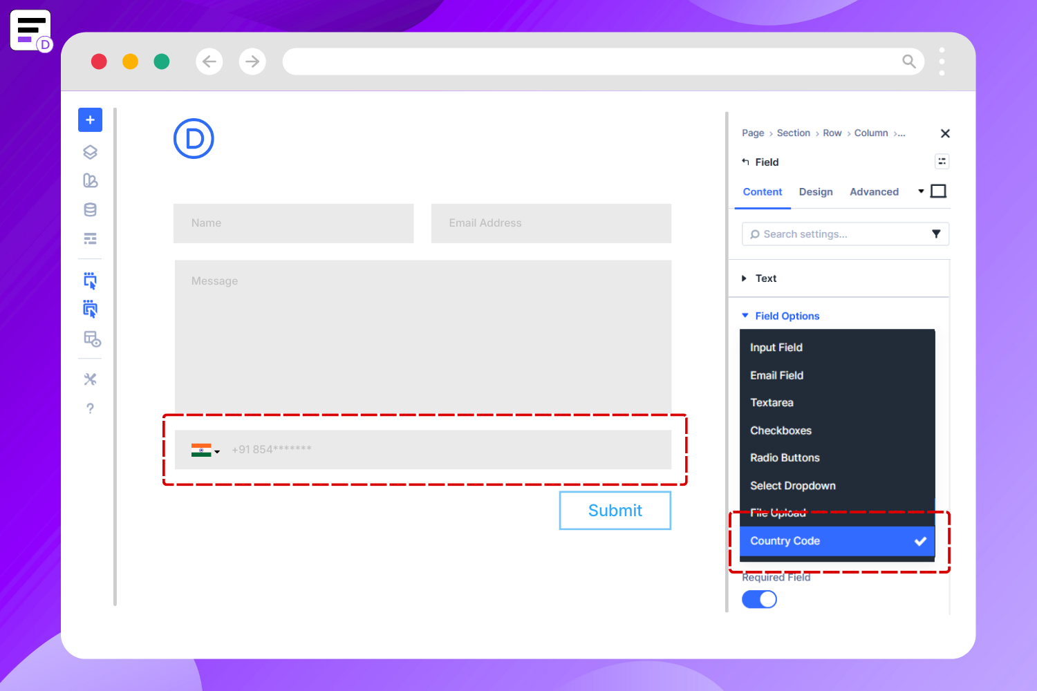 Add a country code selector inside your Divi form phone field to support international form submissions and improve user experience. -