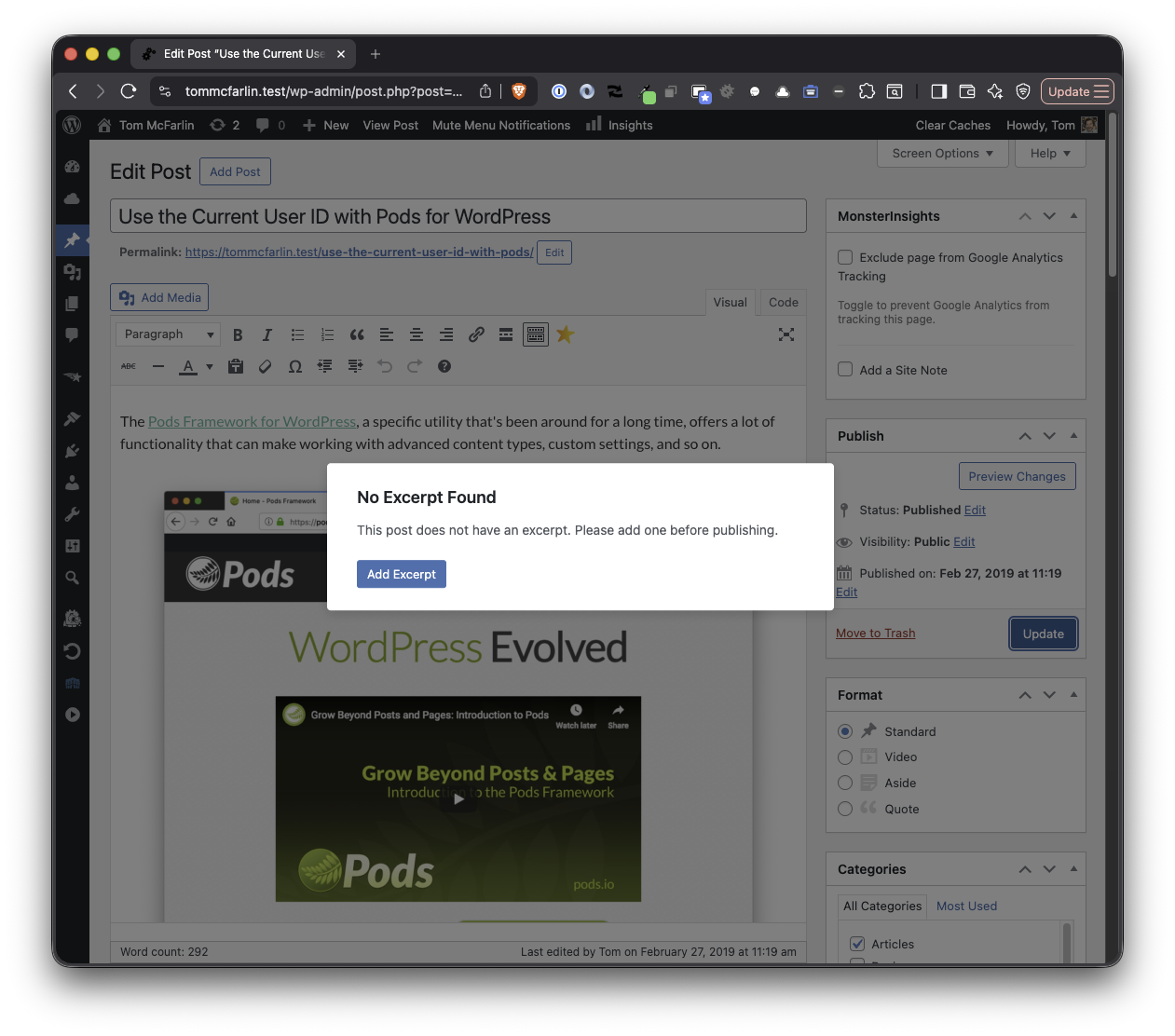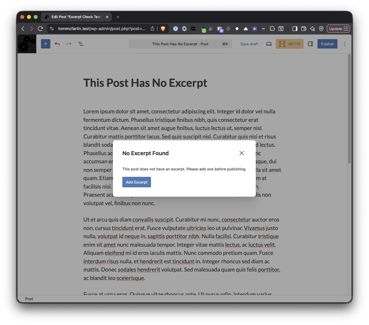 - Intercepts publish and schedule actions when no excerpt is present
