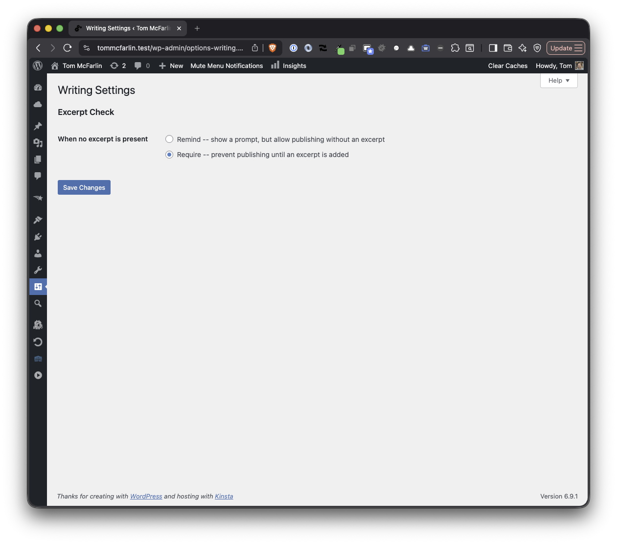 - Settings on the Settings > Writing page