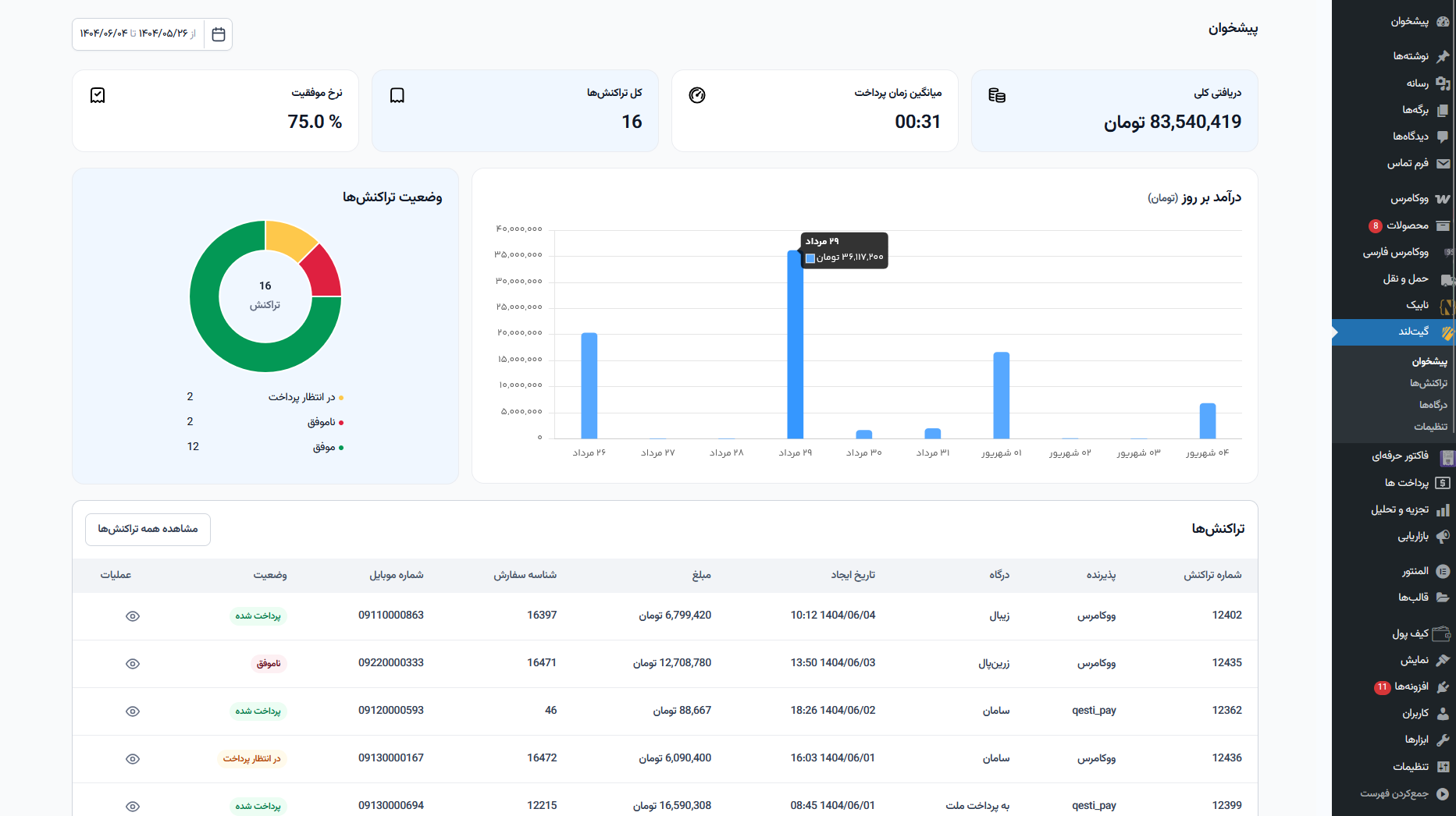 - پیشخوان تراکنش با قابلیت بروزرسانی خودکار