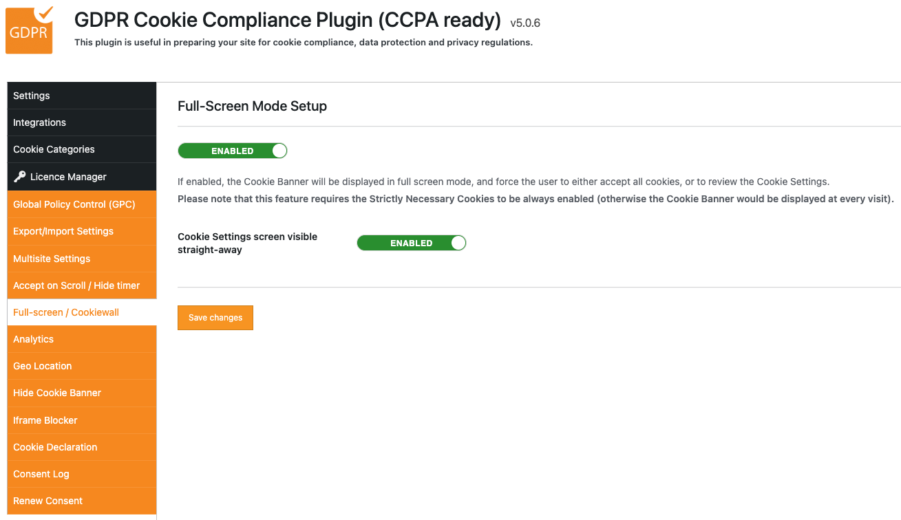 - You can adjust all settings in the “GDPR Cookie Compliance” main menu link.