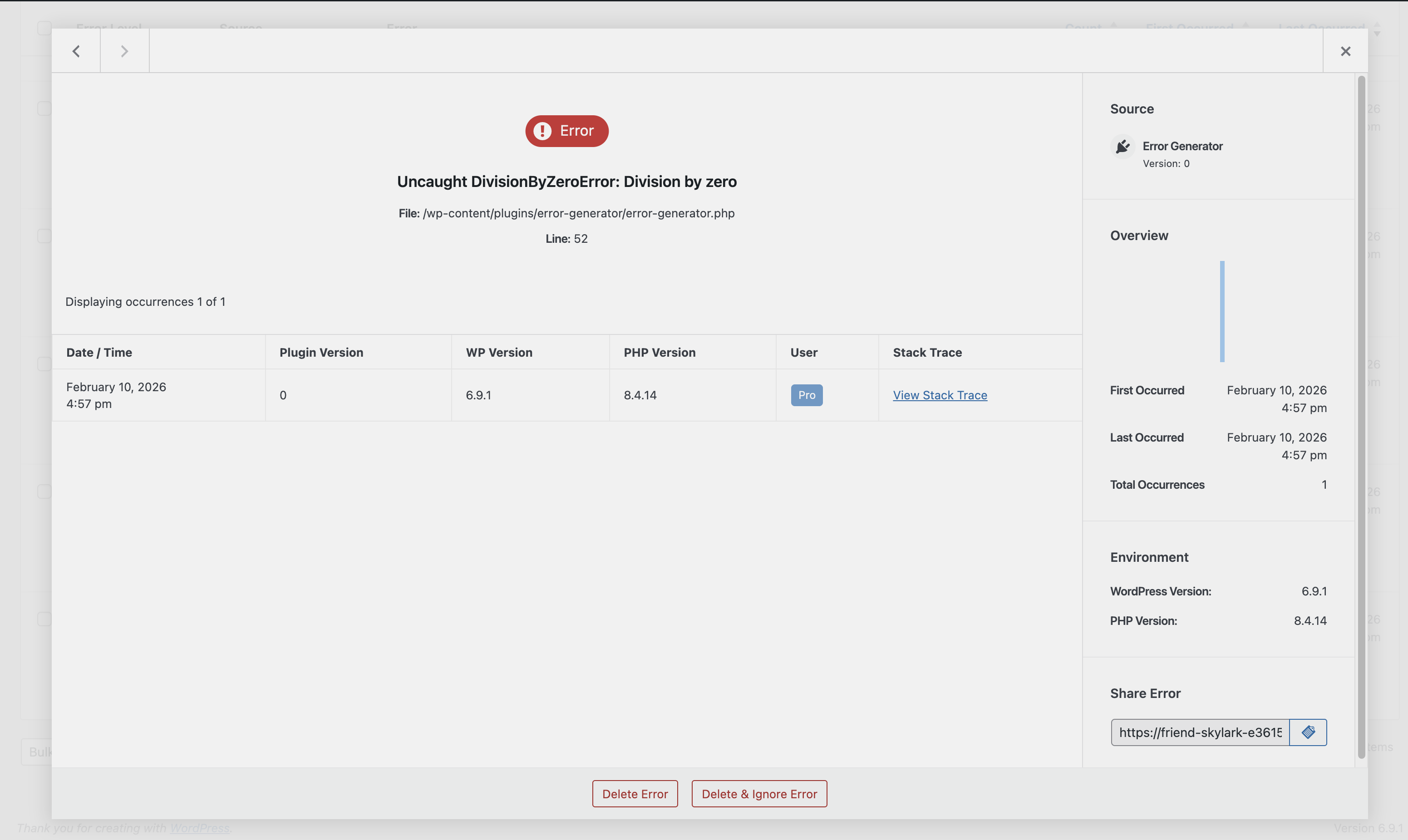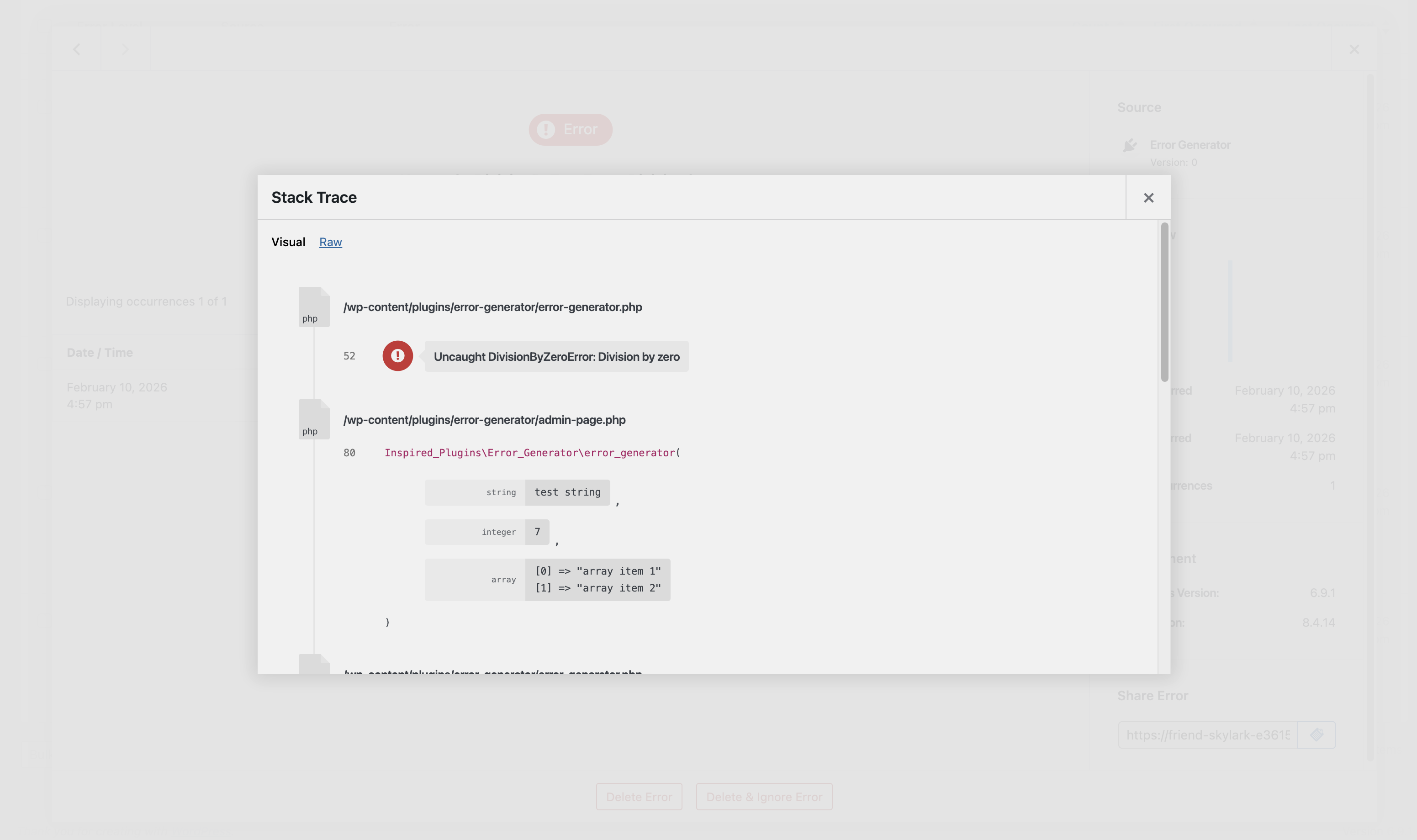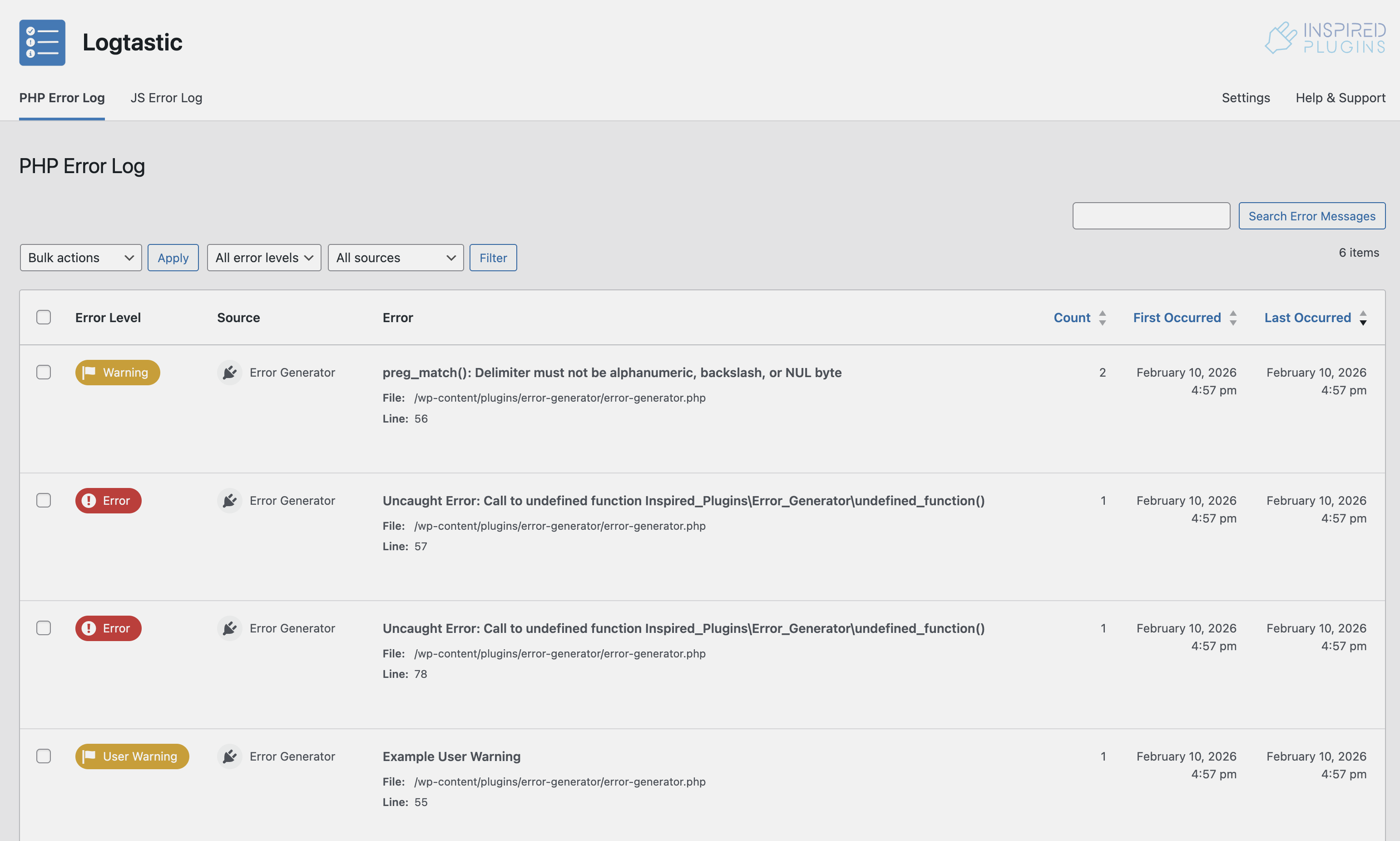 Log PHP errors on your WordPress site, with configurable options for error levels, scope and log retention. View errors in an easy to digest, searchable and filterable report. Optionally capture full error stack traces and arguments, and display with the plugins stack trace visualiser. Log editing functions allow you to delete and ignore specific errors.