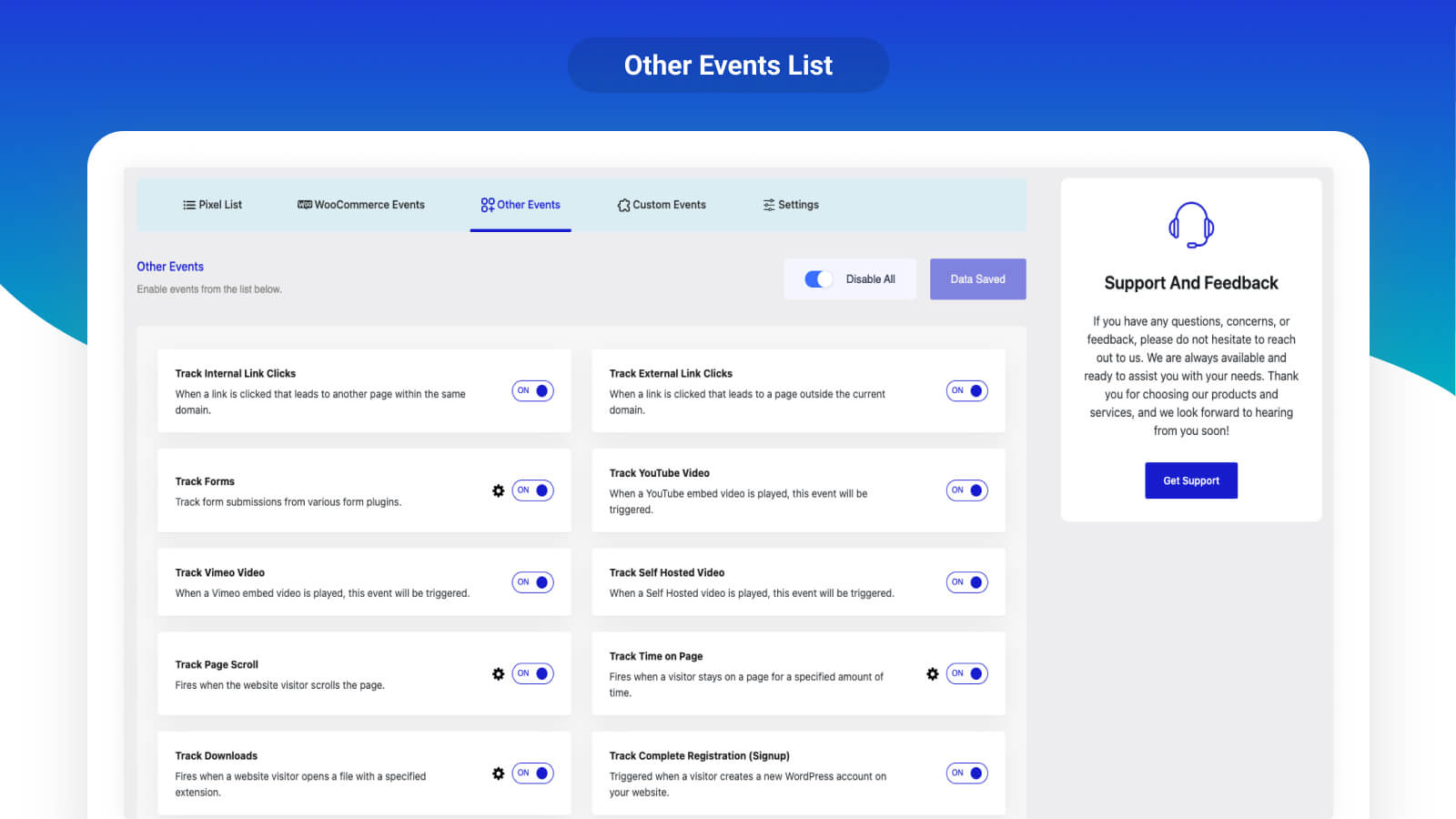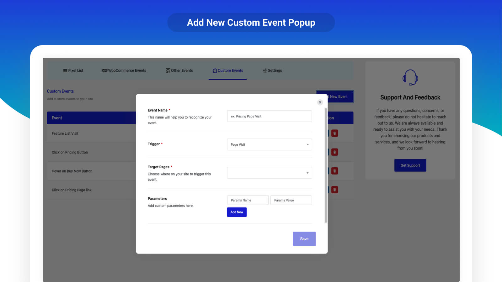 - Create Custom Events: Interested in crafting personalized events to precisely monitor activities on your site, including page visits, button clicks, and link interactions? Crafting custom events is effortlessly achievable with Pixelavo.