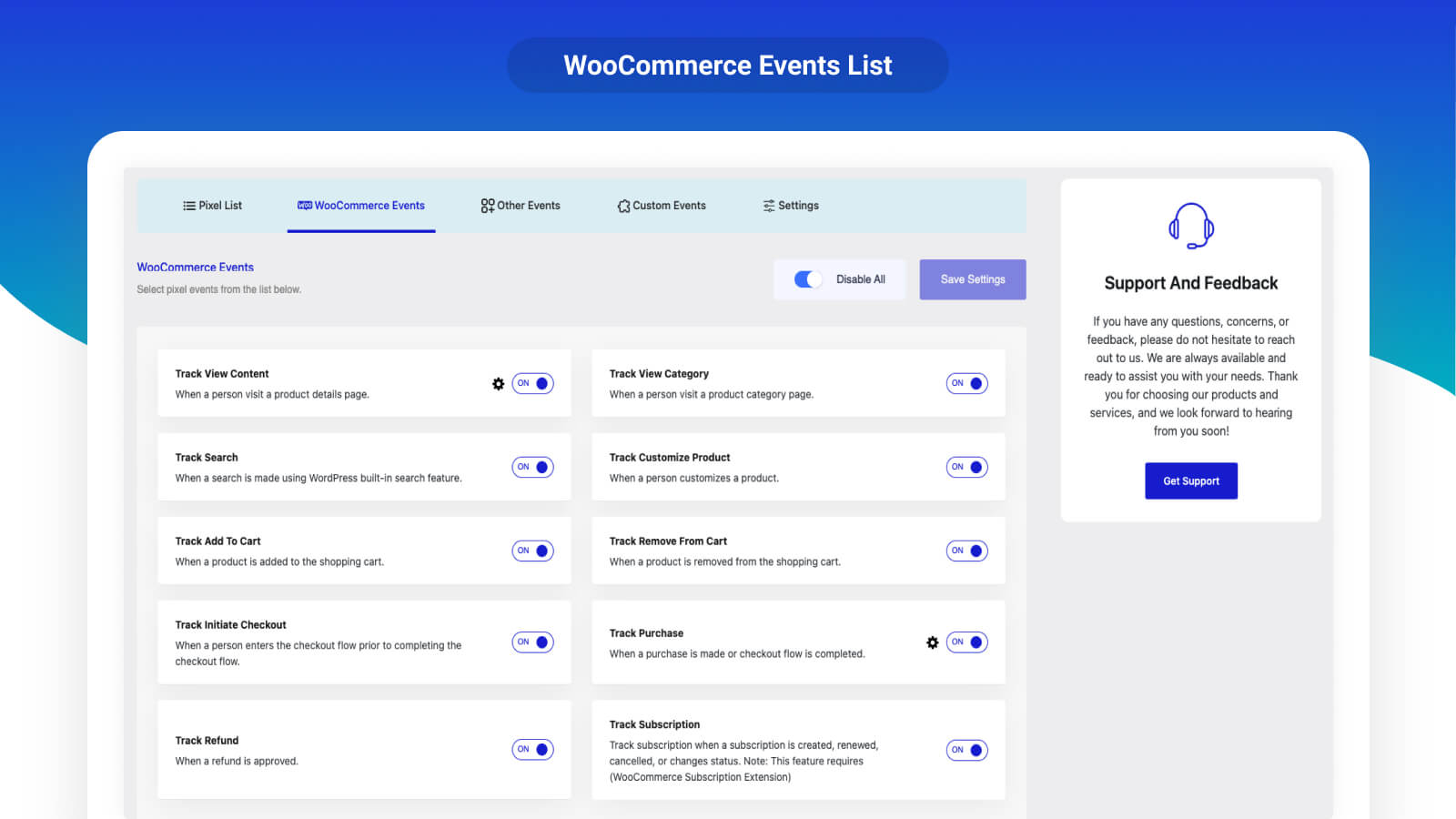 - Updated: Move “ViewContent” and “Purchase” events setting to “WooCommerce Events” page.