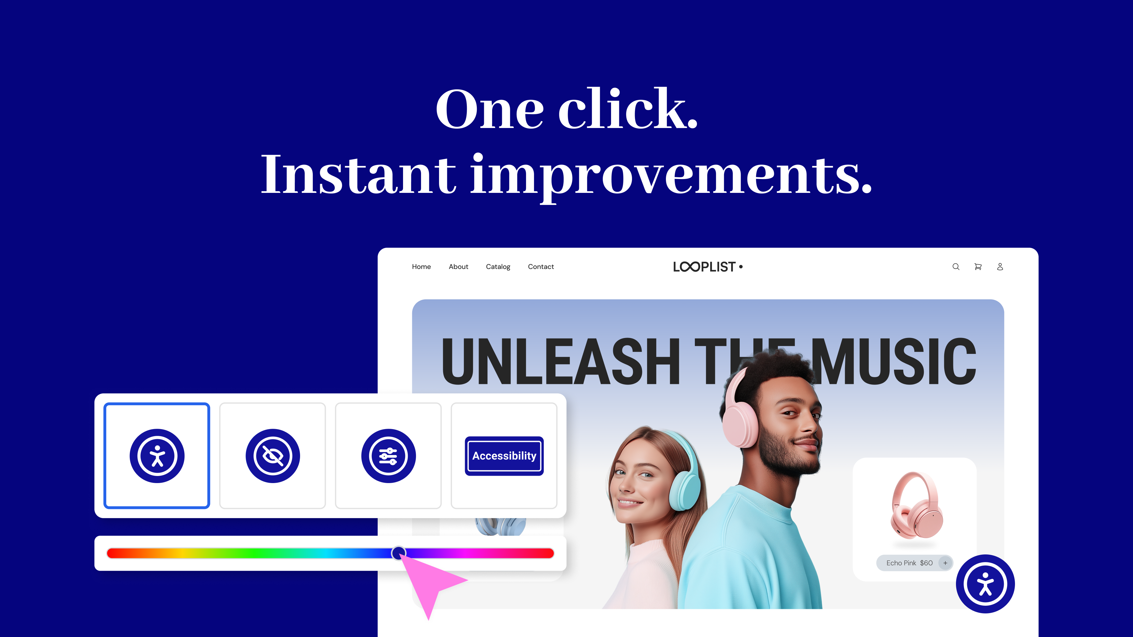 Accessibility button: Add a button that opens the accessibility menu in one click, and tailor its icon, color, label, and placement to match your brand.