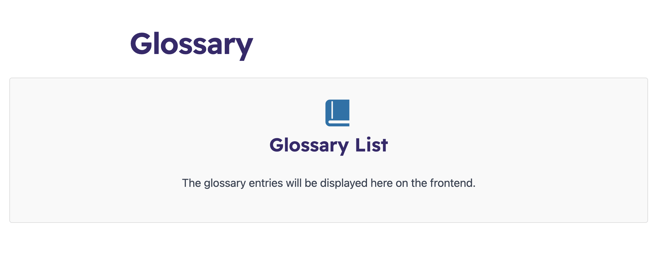 - Create a Glossary Page: Create a new page in WordPress (e.g., "Glossary" or "Terms") and add the Glossary List block to the page