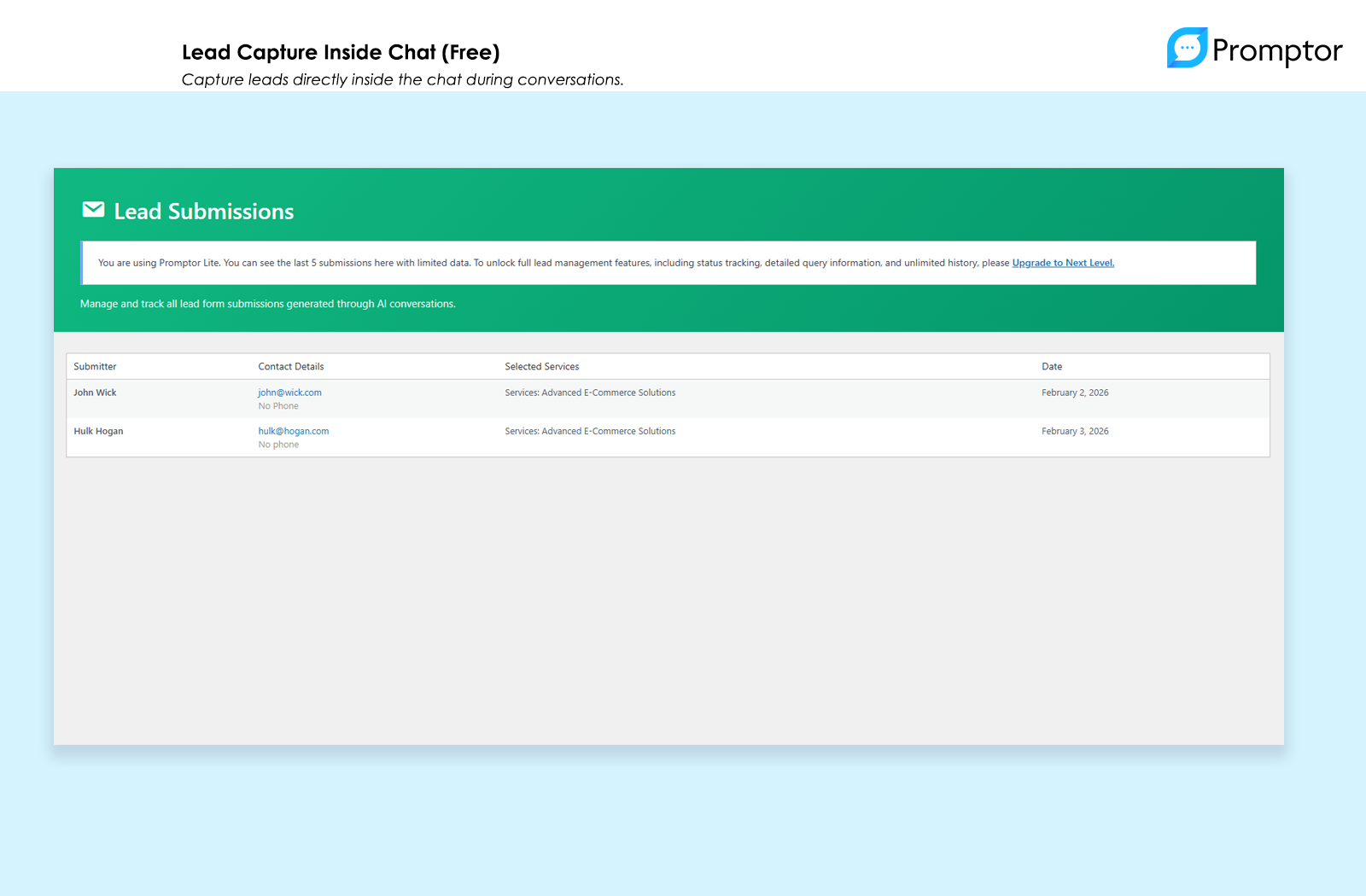 Lead Capture Inside Chat (Free) - Collect contact information directly inside the conversation