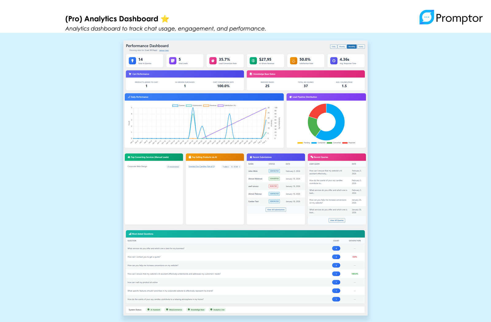 (Pro) Analytics Dashboard - Track queries, leads, conversion rates, and AI-driven revenue