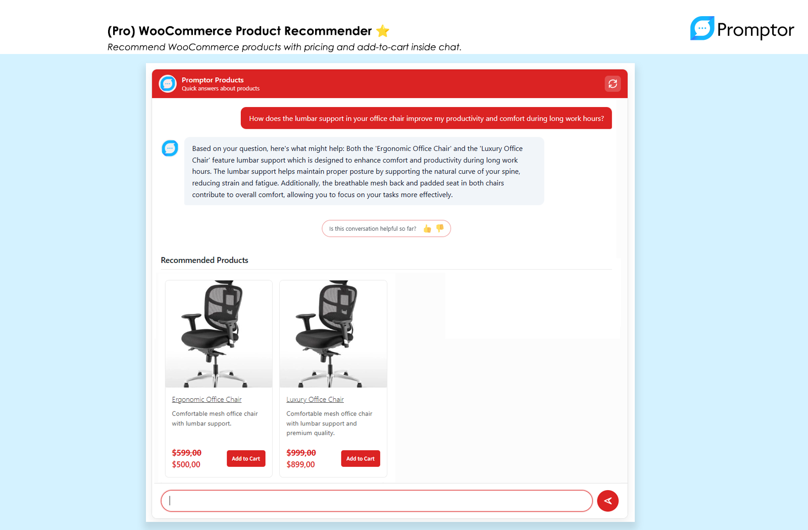 - WooCommerce Stores wanting to recommend products through conversation (Pro)