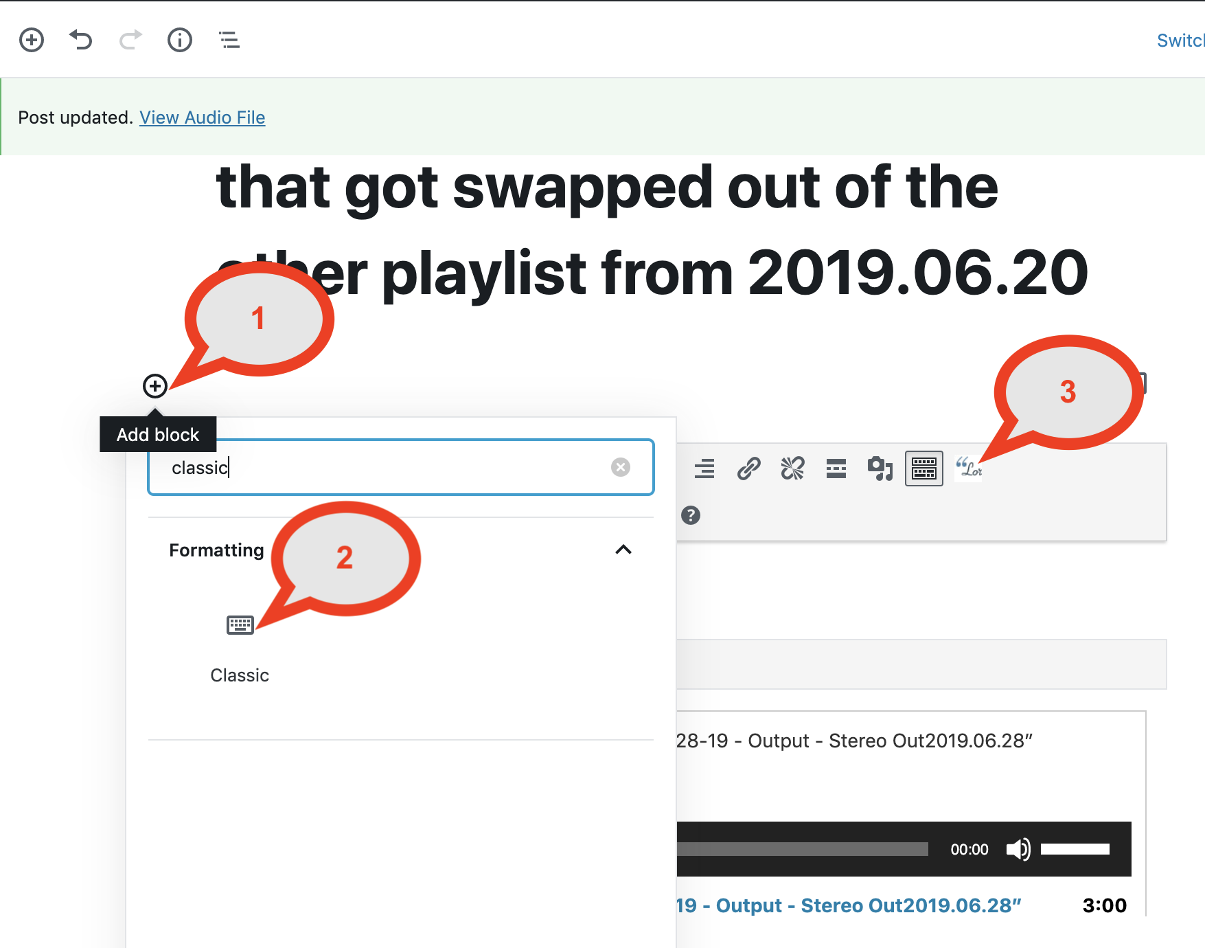 IMPORTANT: To use in the new WordPress (Gutenberg) editor, you can either: