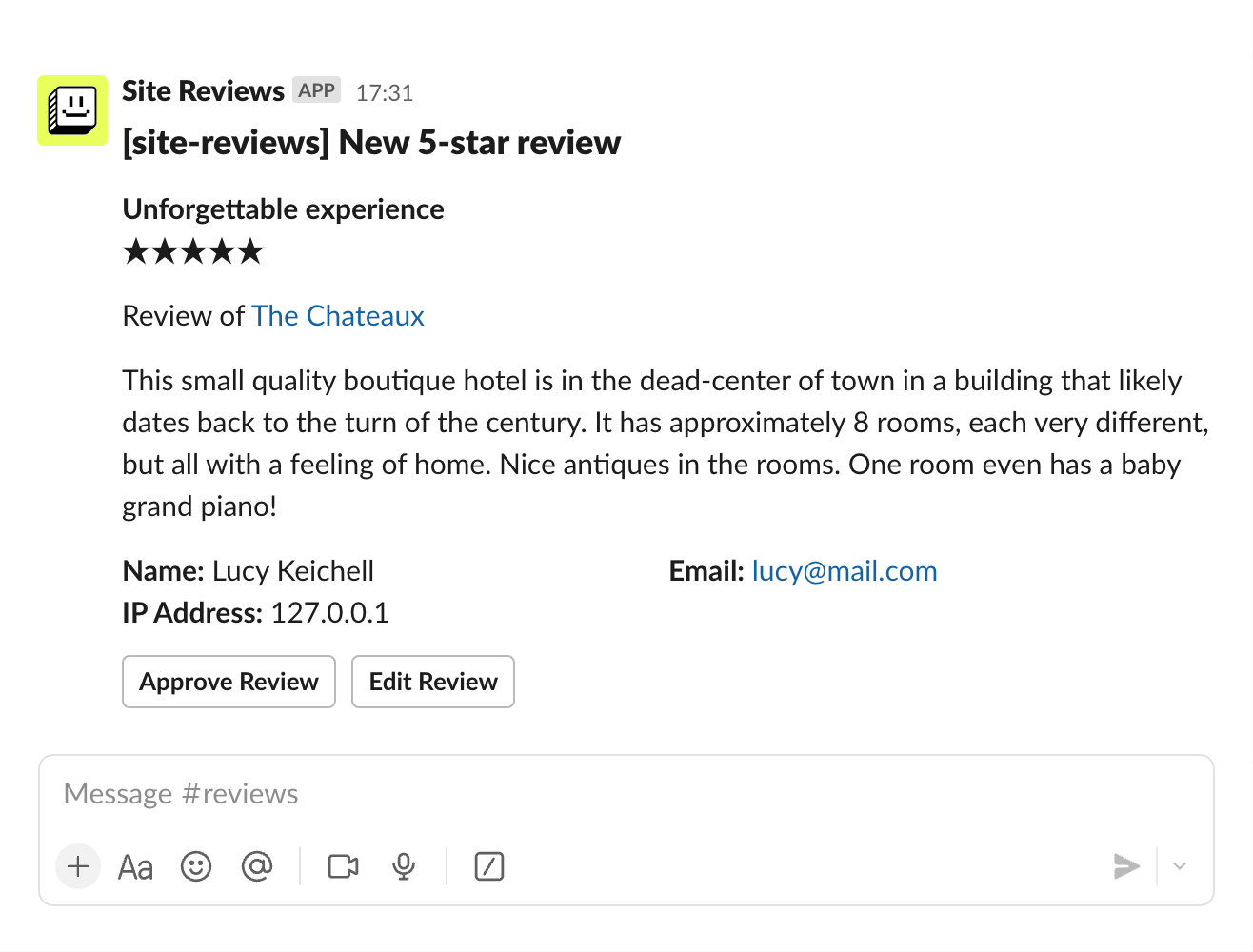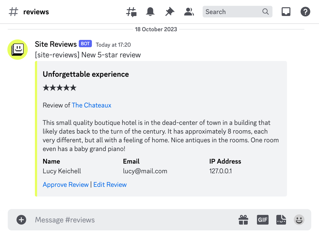 - Discord and Slack Integration: Receive notifications in Discord and/or Slack when a review is submitted