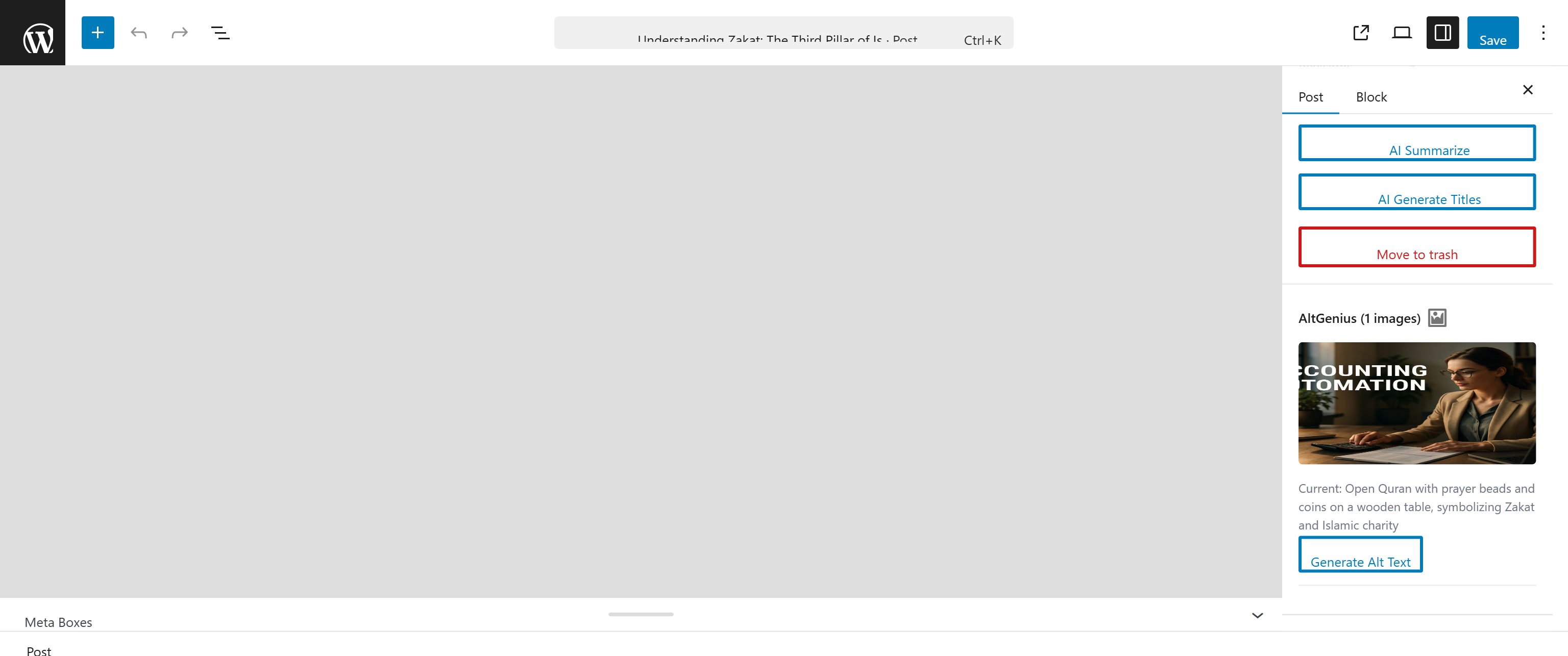 AltGenius Editor Panel — Per-image alt text generation in the block editor