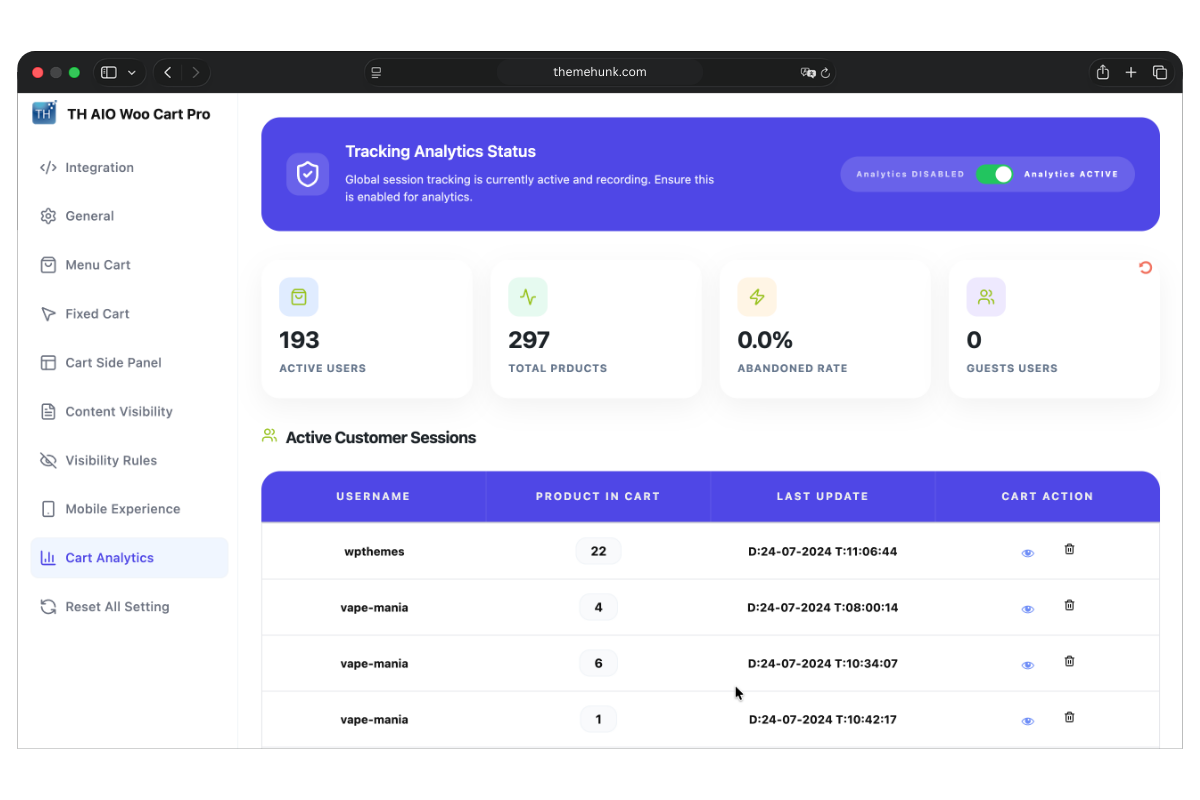 - Get started from Dashboard > TH All In One Woo Cart