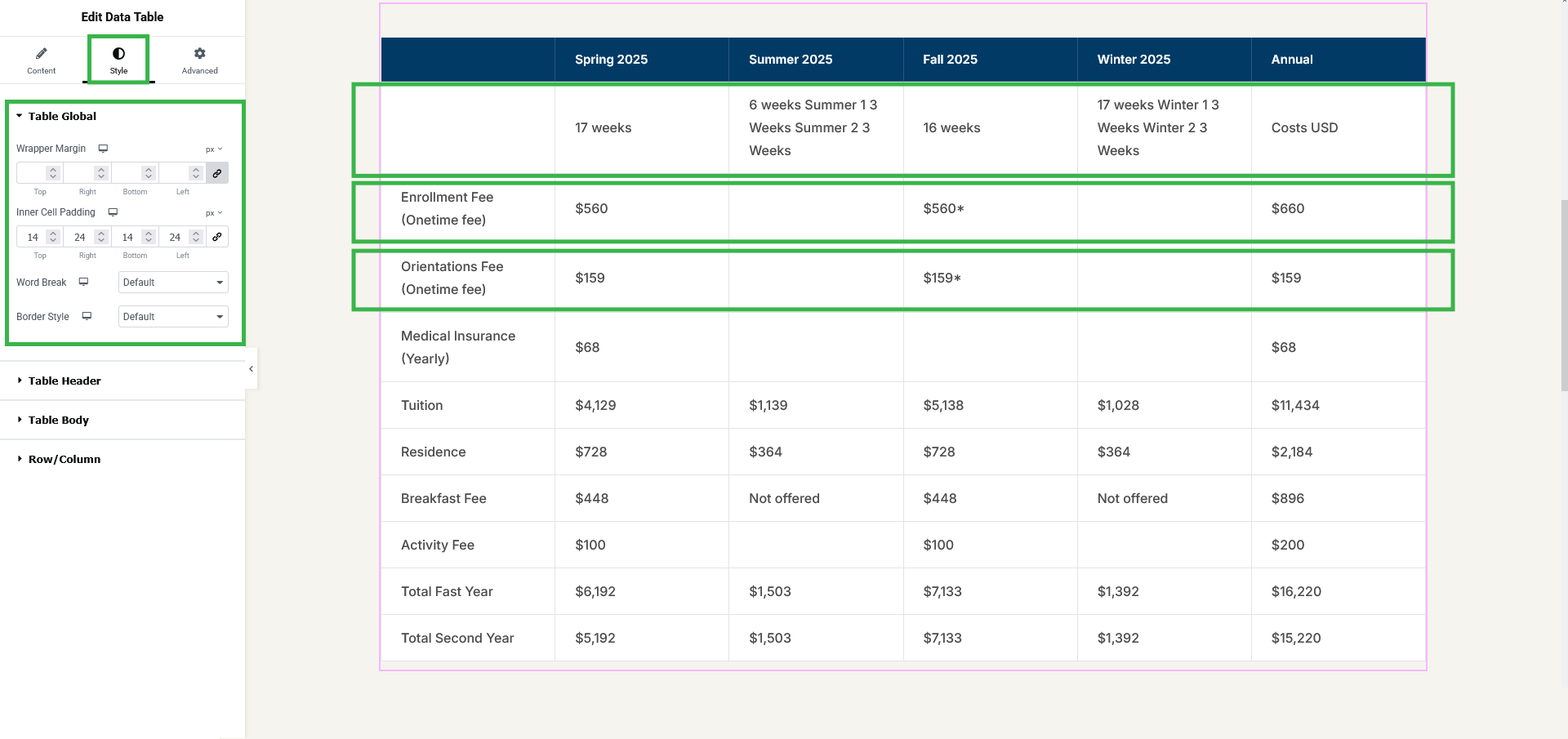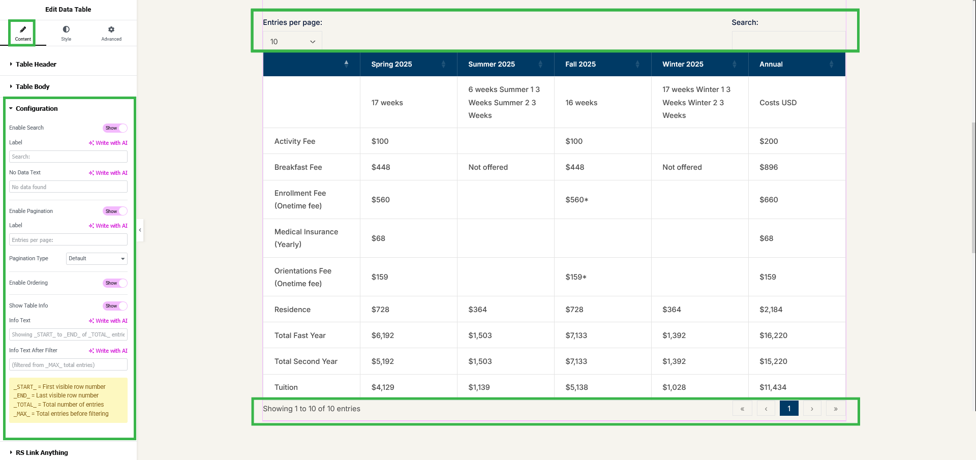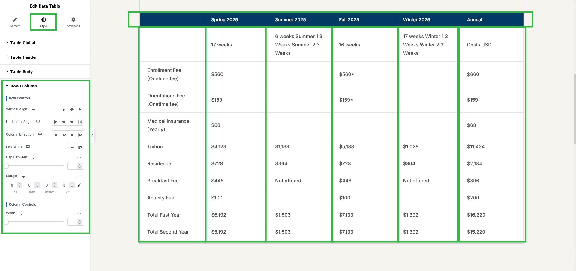 – Tables are powered by Elementor repeater fields, making it easy to manage dynamic data.