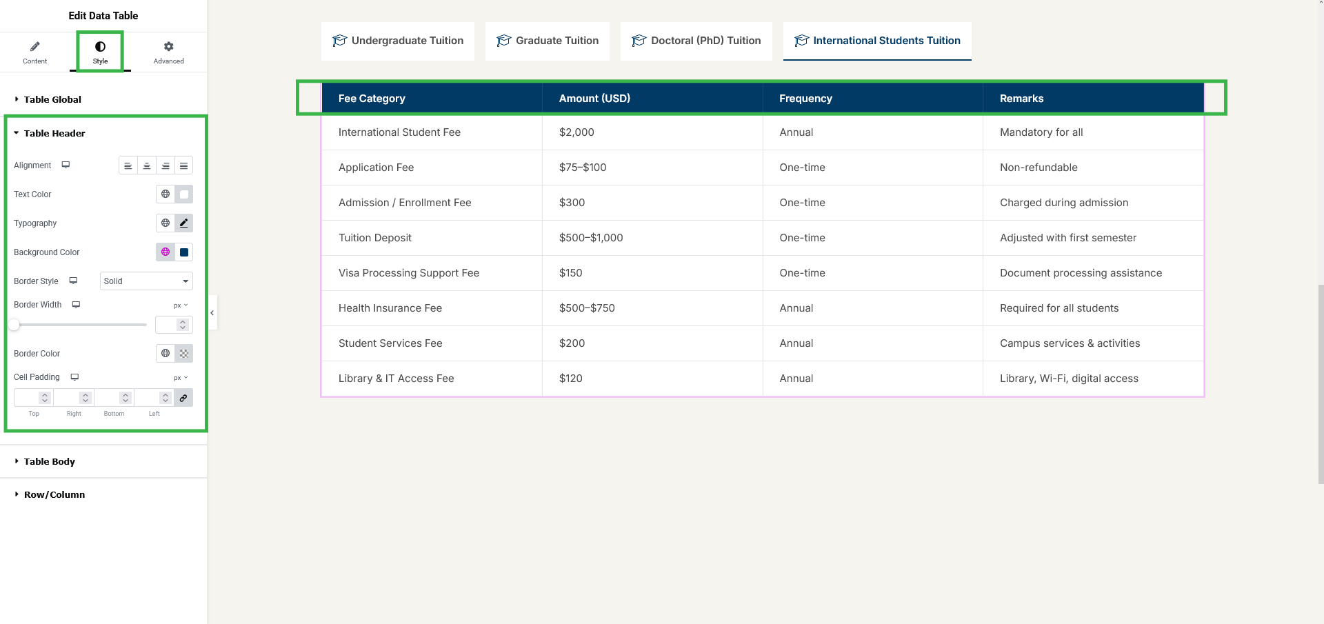 - Add a new “Ultimate Data Table” widget in Elementor and start customizing your tables.