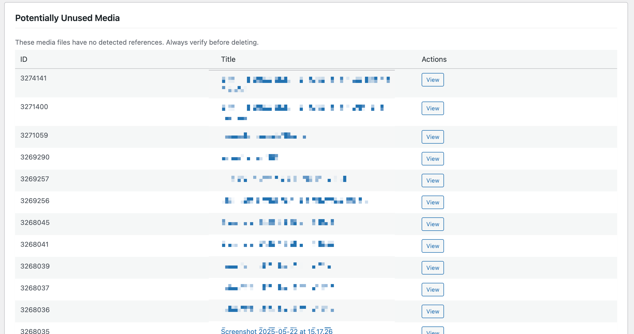 - Scan — The plugin finds all media usage across your site (content, ACF, blocks, widgets, options, etc.)