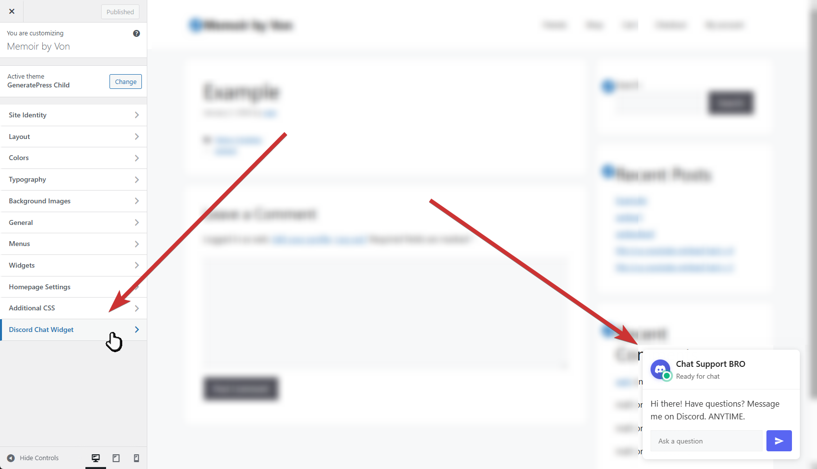 - Go to Appearance Customize Vondelphia Chat Widget for Discord