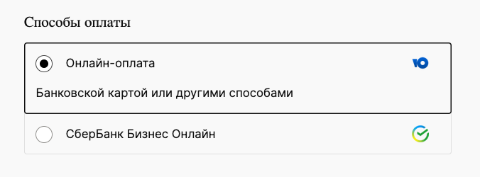 Убрали одиночные методы оплаты