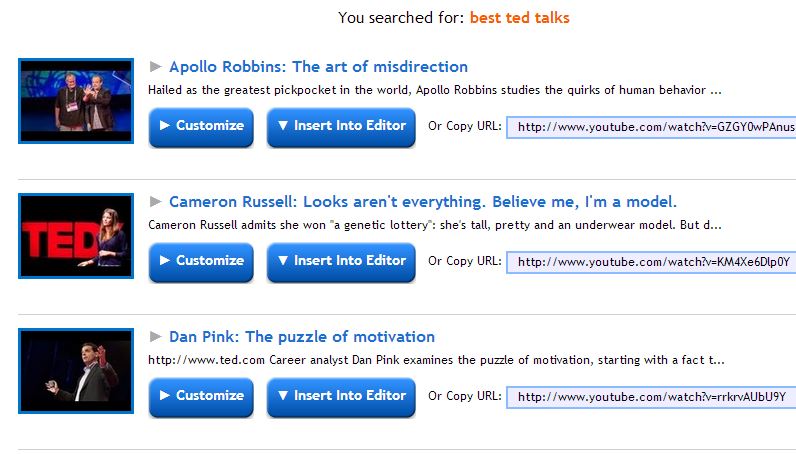 Embed Plus for YouTube Plugin Screenshot 4: Wizard Insert Search Result Screenshot