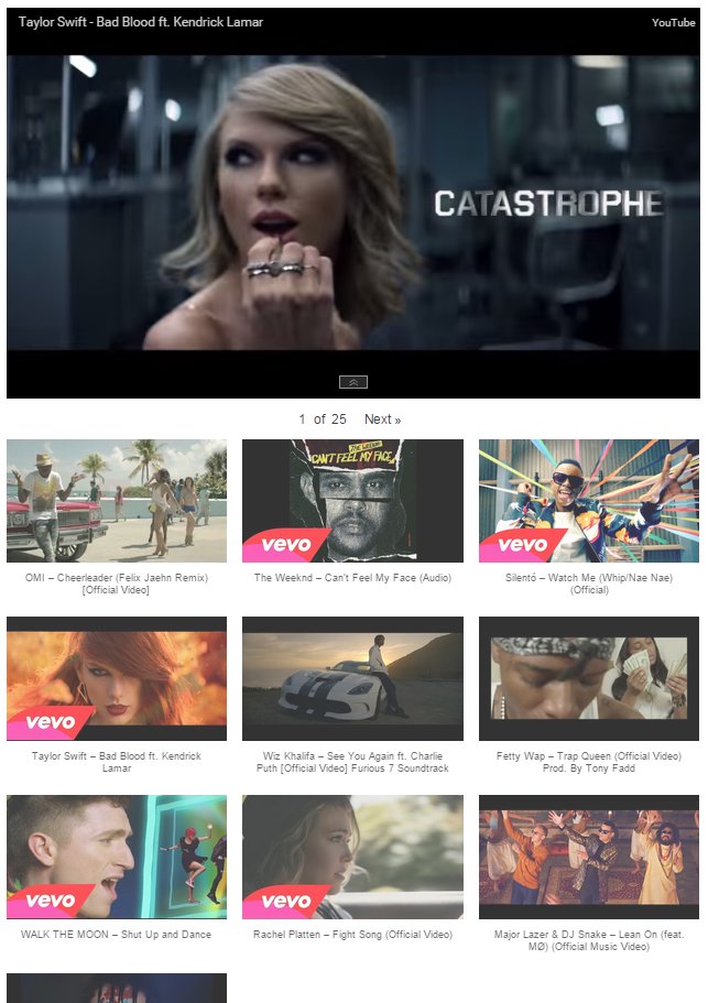 Embed Plus for YouTube Plugin Screenshot 7: YouTube playlist galleries are also easily supported. Here's the Billboard Top 25 Songs for example.